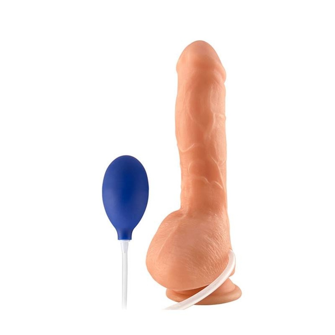 Pênis realístico com ventosa, escroto, veias e glande salientes. Possui sistema para simulação de ejaculação.