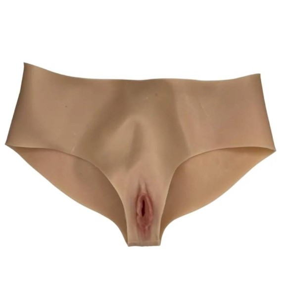 Vagina realística em formato de calcinha, feita em silicone macio e elástico. Possui toque suave e aparência natural, imitando com perfeição a textura da pele.