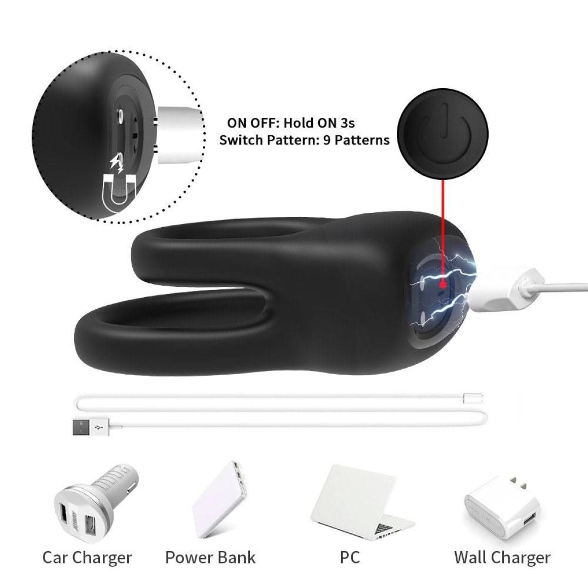 2. Anel Peniano Duplo Recarregável com 9 Modos de Vibração