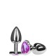 Plug anal formato coração em alumínio pequeno, possui em sua base uma pedra colorida lapidada como uma jóia.