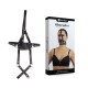 Ela é confeccionada em material Montana de grande resistência, revestimento interno macio e confortável e detalhes niquelados. No centro da peça, a mordaça tem formato retangular e tiras ajustáveis que vão em torno da cabeça e queixo, permitindo melhor ajuste e restrição.
