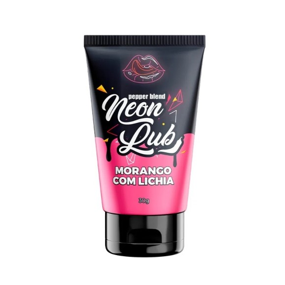 NEON LUB GEL COMESTÍVEL MORANGO C LICHIA BRILHA EM LUZ NEGRA 30G PEPPER BLEND