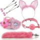 Kit fox composto por 1 tiara de pelúcia + 1 plug anal com cauda em pelúcia + 1 par de grampos para seios em metal com presilhas ajustáveis com guizo na ponta + coleira com coração vazado em metal + máscara de fantasia sensual com strass e flor.