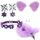 Kit fox composto por 1 tiara de pelúcia + 1 plug anal com cauda de pelúcia + 1 par de grampos para seios rosqueável parafuro com detalhe de flor na ponta + coleira vazada em formato de coração com detalhes em flores.